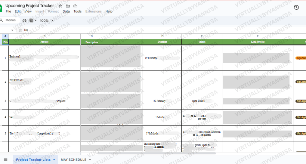 These are examples of backend templates and trackers I’ve used to help clients stay organized, reduce miscommunication, and keep operations running smoothly.