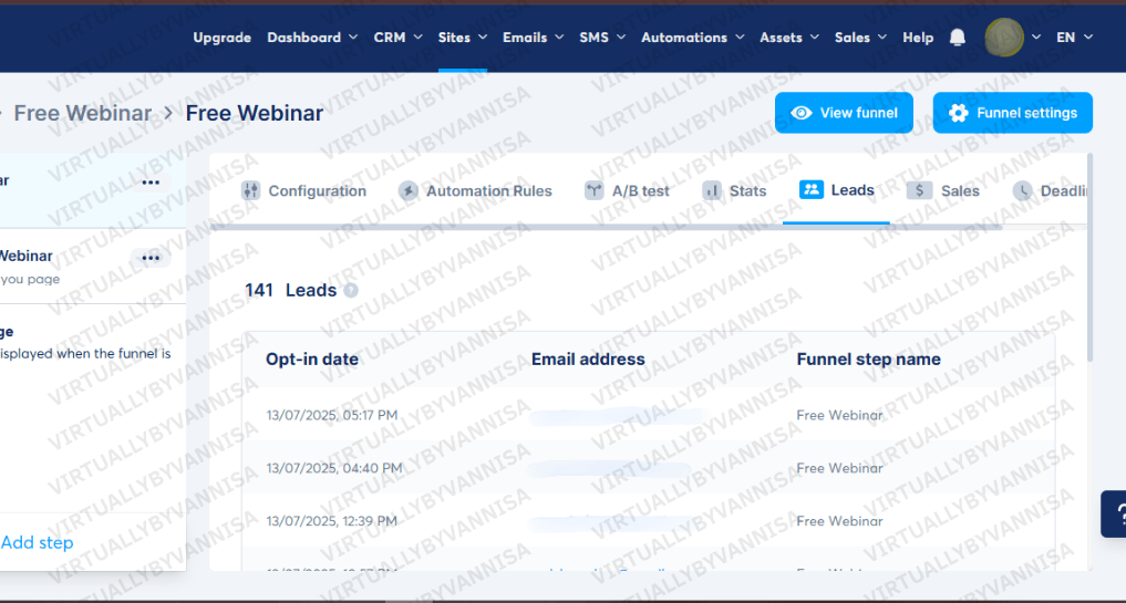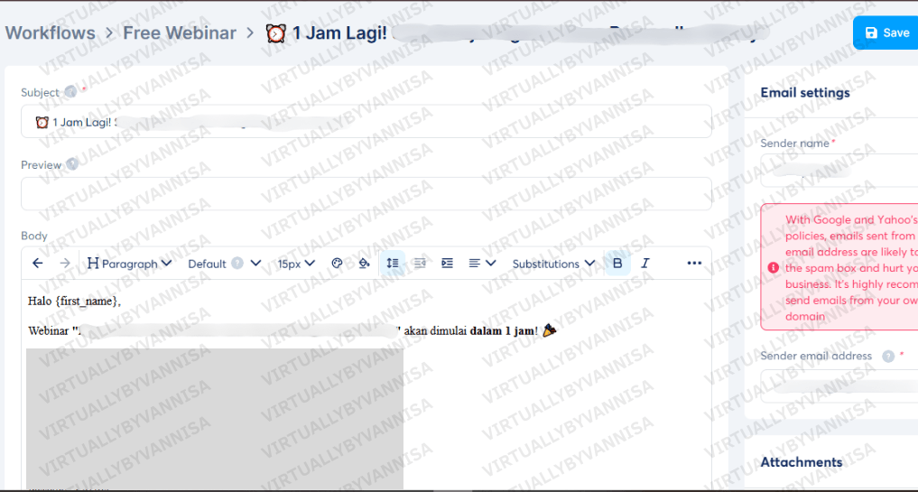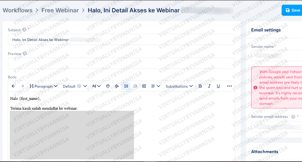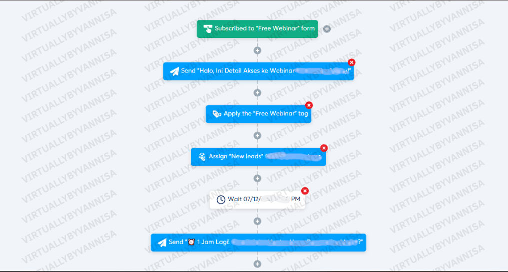 Set up automated email sequences for webinar access, reminders, follow-ups, and material delivery, ensuring students always received the right information at the right time.